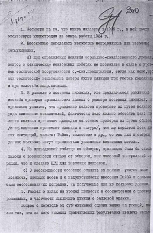 Замечания Аронова к издаваемой книге по поводу определения урожайности. 1935 г.