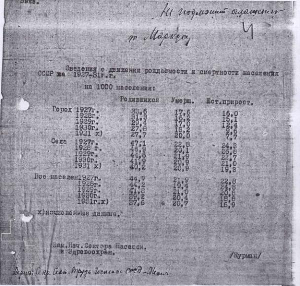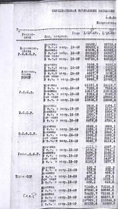 Перспективный расчет Госплана населения СССР с 1.04.1927 г. по 1.04.1933 г. 8 сентября 1929 г.