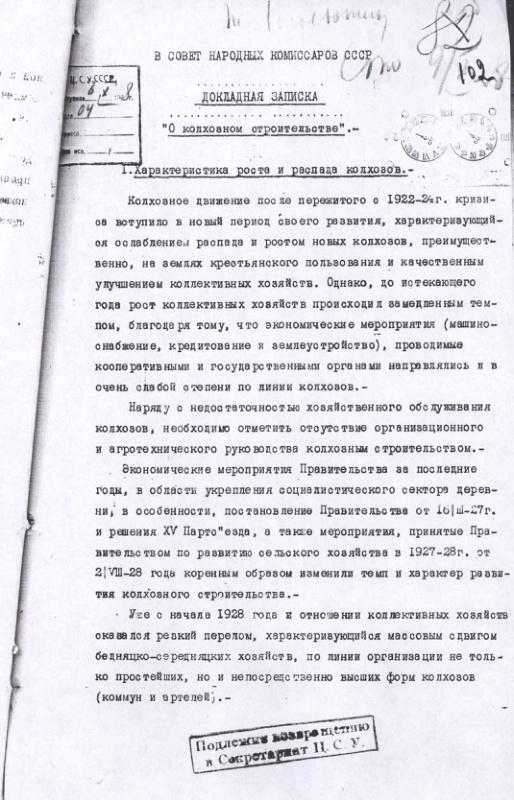 Доклад о колхозном строительстве и его задачах. 5 апреля 1929 г.