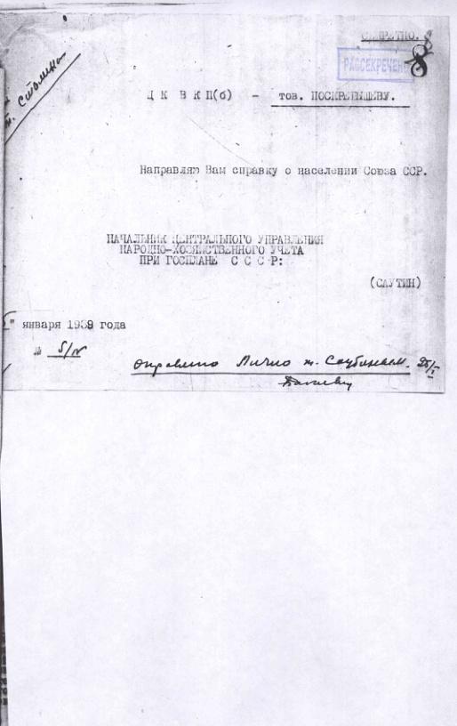 Справка ЦУНХУ о населении СССР в 1937-1938 гг. 21 января 1939 г.