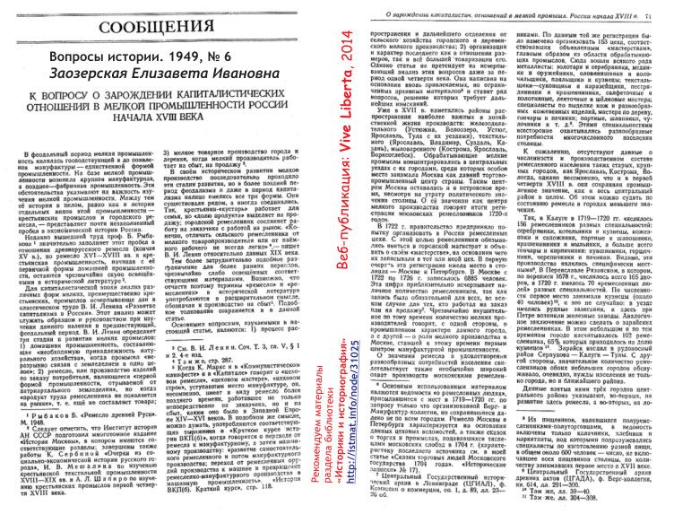 К вопросу о зарождении капиталистических отношений в мелкой промышленности России начала XVIII века