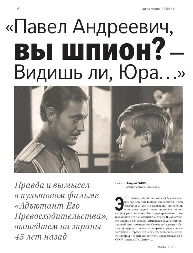 "Павел Андреевич, вы шпион? - Видишь ли, Юра..." Правда и вымысел в культовом фильме "Адъютант Его Превосходительства", вышедшем на экраны 45 лет назад