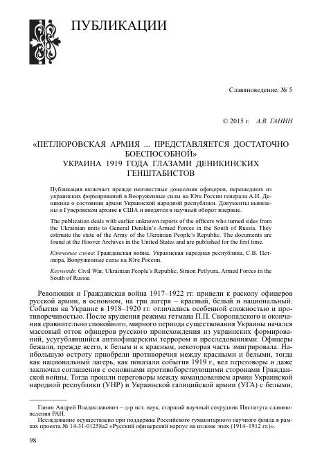 "Петлюровская армия... представляется достаточно боеспособной". Украина 1919 года глазами деникинских генштабистов