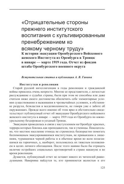 "Отрицательные стороны прежнего институтского воспитания с культивированным пренебрежением ко всякому черному труду". К истории эвакуации Оренбургского Войскового женского Института из Оренбурга в Троицк в январе — марте 1919 года.