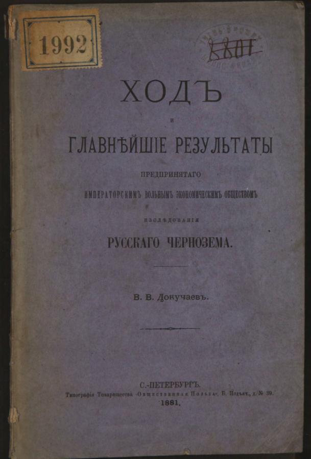 Ход и главнейшие результаты предпринятого Императорским вольным экономическим обществом исследования русского чернозема