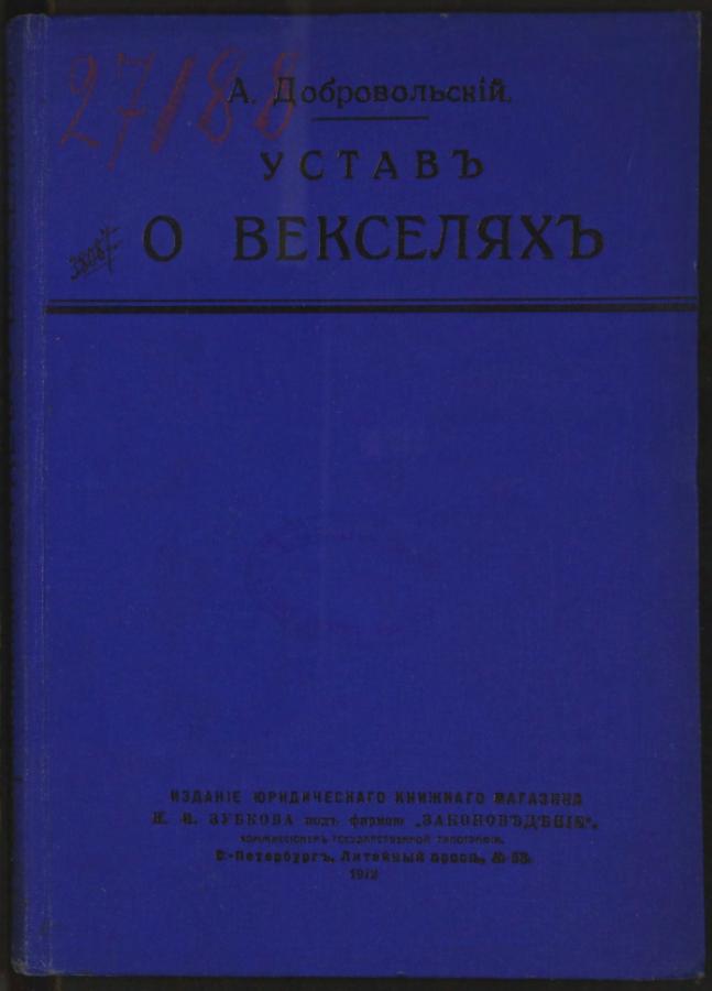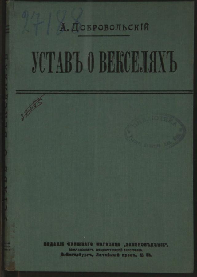 Устав о векселях 27 мая 1902 года, введенный в действие 1 января 1903 года