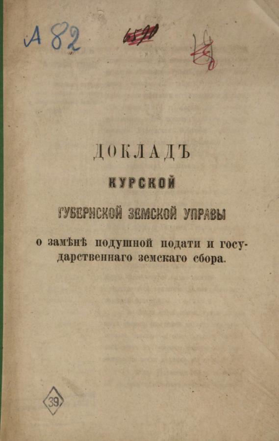 Доклад Курской Губернской Земской Управы о замене подушной подати и государственного земского сбора