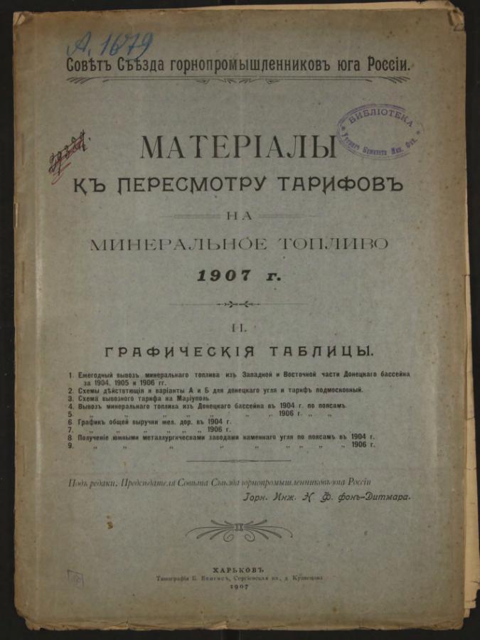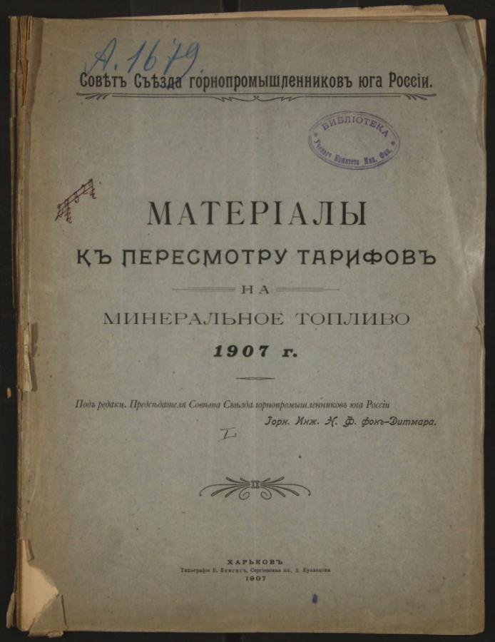 Материалы к пересмотру тарифов на минеральное топливо 1907 г.