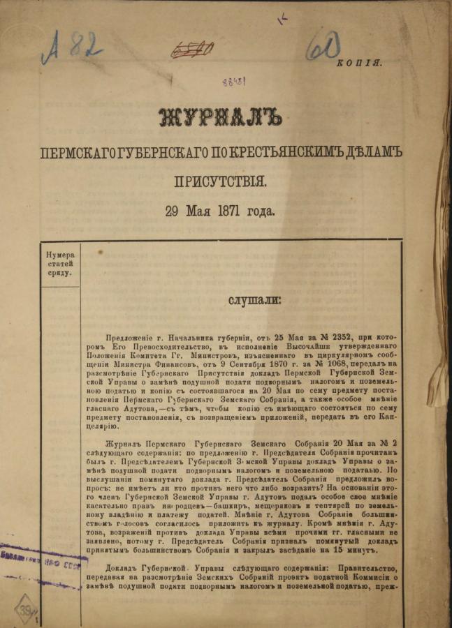 Журнал Пермского губернского по крестьянским делам присутствия 29 мая 1871 года