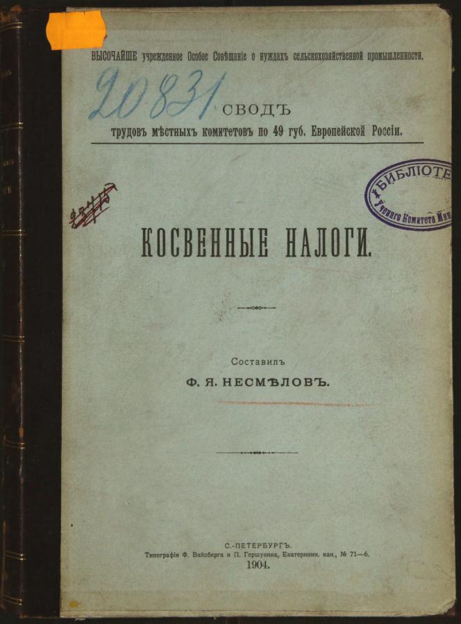Свод трудов местных комитетов по 49 губерниям Европейской России. Косвенные налоги