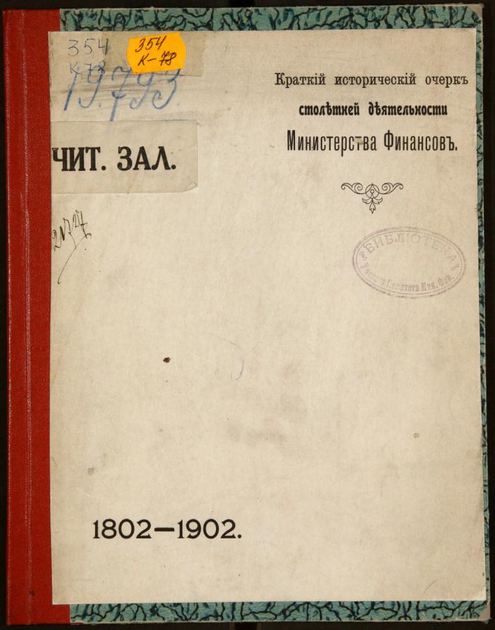 Краткий исторический очерк столетней деятельности Министерства финансов. 1802-1902