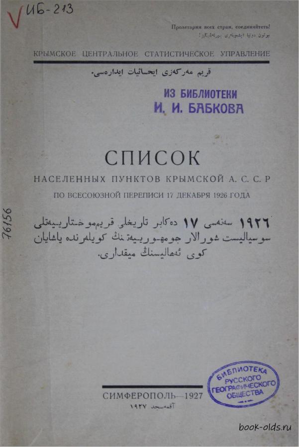Список населённых пунктов Крымской АССР по всесоюзной переписи 17 декабря 1926 года