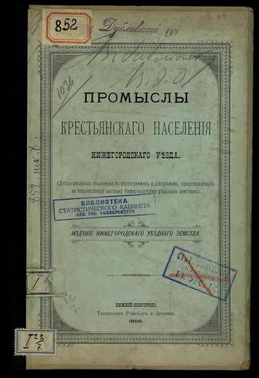 1896 Промыслы крестьянского населения Нижегородского уезда