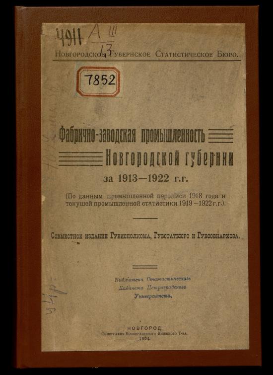 Фабрично-заводская промышленность Новгородской губернии за 1913-1922