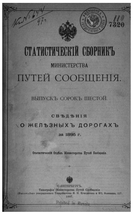 Статистический сборник Министерства путей сообщения. Выпуск 46. Сведения о железных дорогах за 1895 г.