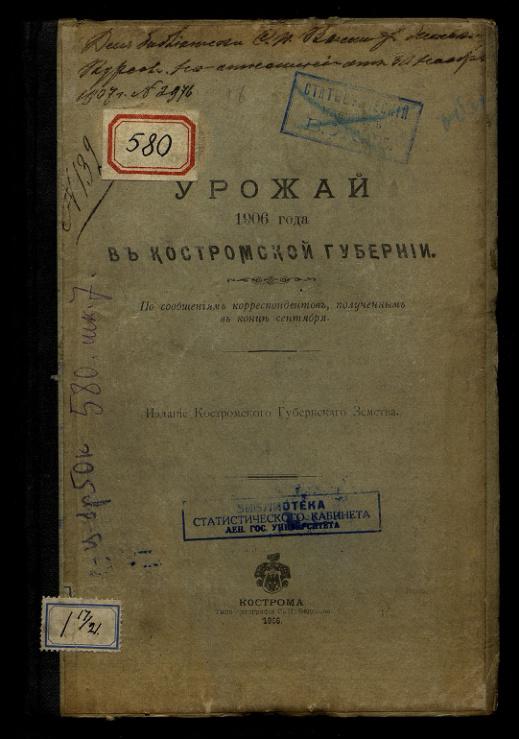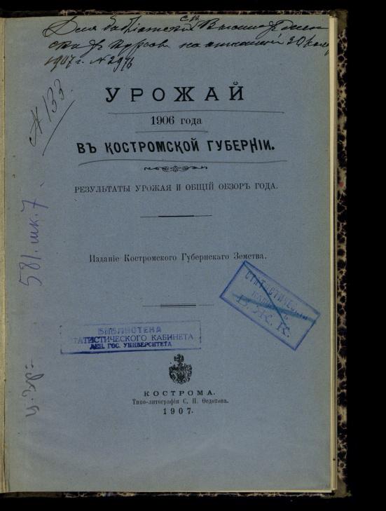 Урожай 1906 года в Костромской губернии. Результаты урожая и общий обзор года