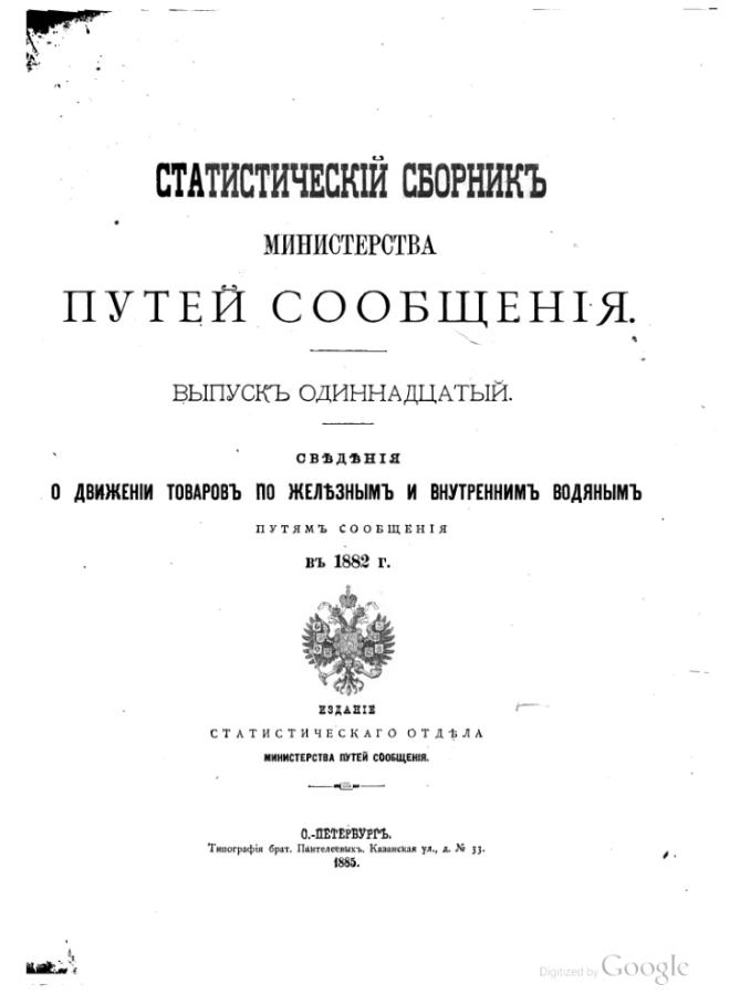 Статистический сборник Министерства путей сообщения. Выпуск 11. О движении товаров по железным и внутренним водным путям в 1882
