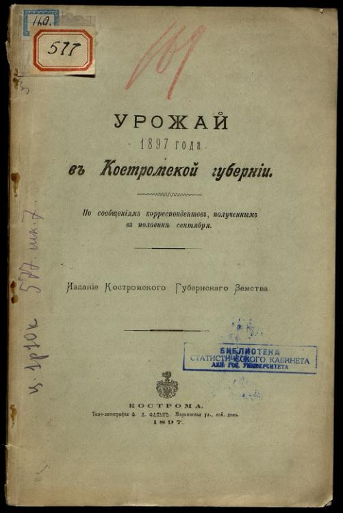 Урожай 1897 года в Костромской губернии. По сообщения корреспондентов, полученным в середине сентября