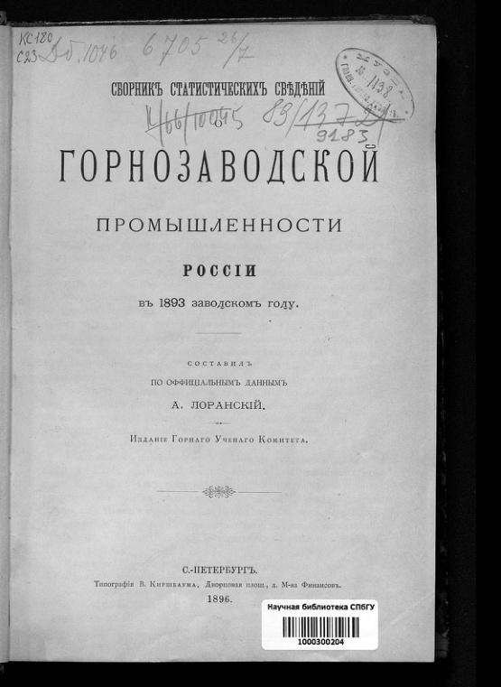 Сборник статистических сведений о горнозаводской промышленности России в 1893 году