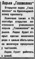 Ларьки Главмолоко (как сбивали цены у частников). Август 35 г.