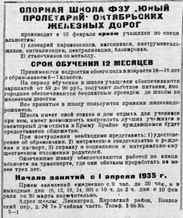Зарплата в школе ФЗУ "Юный пролетарий" Октябрьских железных дорог. Февраль 35 г.