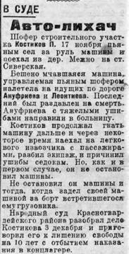 В суде. Авто-лихач. 10 лет л/с за сбитого насмерть пешехода. Декабрь 35 г.