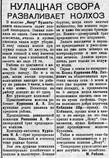 Кулацкая свора разваливает колхоз. Сентябрь 35 г.