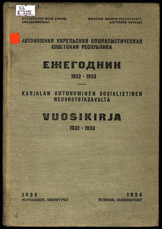 Автономная Карельская Социалистическая Советская Республика. Ежегодник. 1932-1933