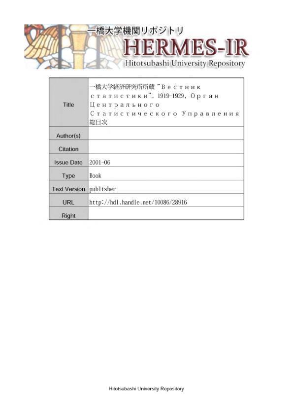 Указатель Вестник статистики 1919-1929
