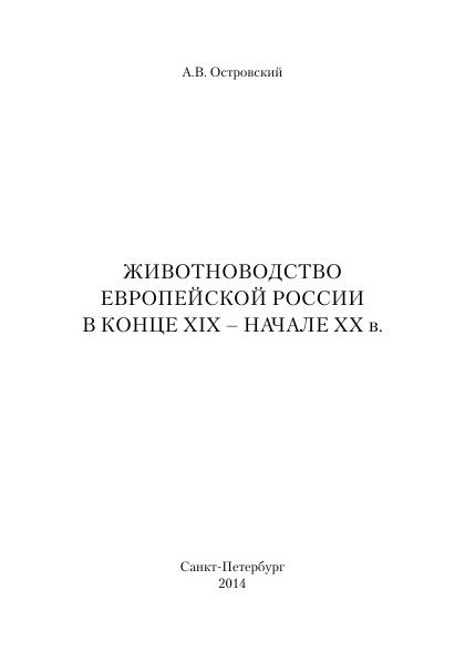 Животноводство Европейской России в конце XIX - начале XX в.