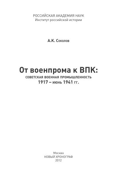 От военпрома к ВПК: советская военная промышленность 1917-1941 гг.