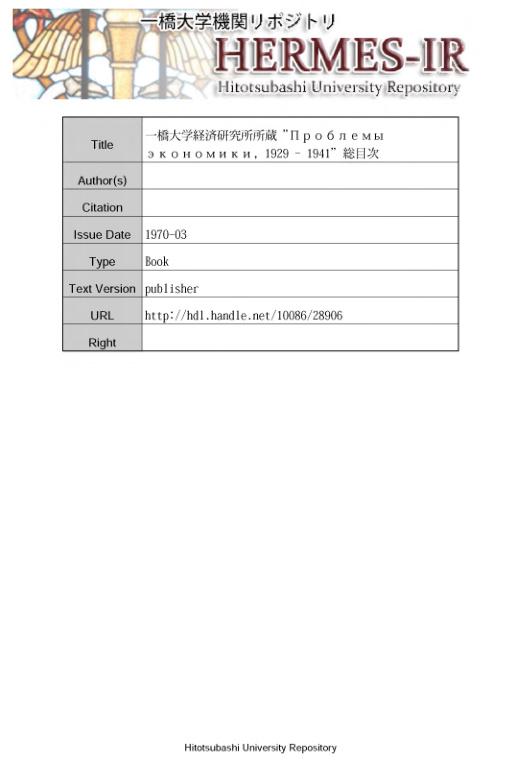 Указатель к журналу "Проблемы экономики" 1929-1941