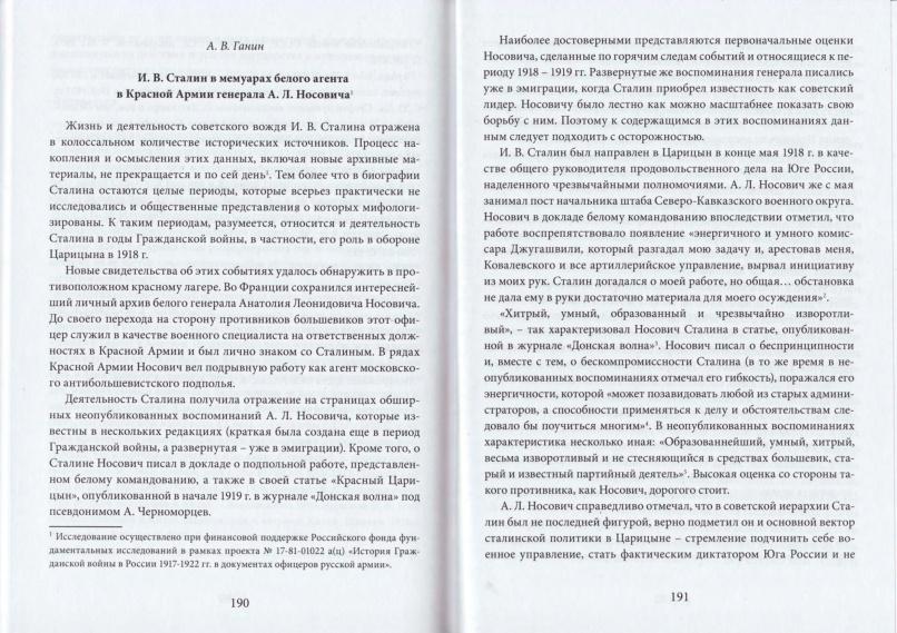 И.В. Сталин в мемуарах белого агента в Красной армии генерала А.Л. Носовича