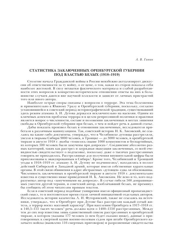 Статистика заключенных Оренбургской губернии под властью белых (1918-1919)
