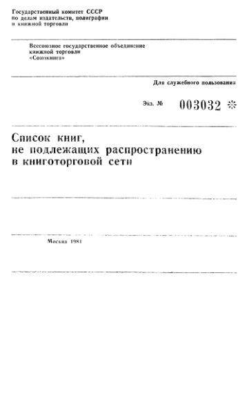 Список книг, не подлежащих распространению в книготорговой сети. 1981