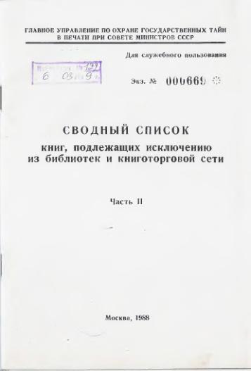 Сводный список книг, подлежащих исключению из библиотек и книготорговой сети. Часть II 1988