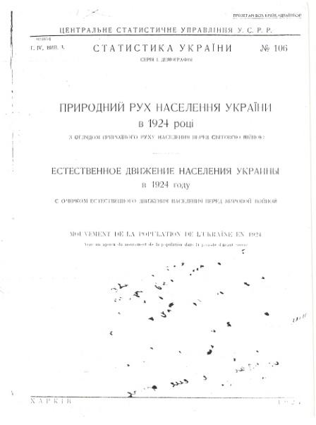 Статистика України, № 106, Природний рух населення України в 1924 роцi [фрагменты]