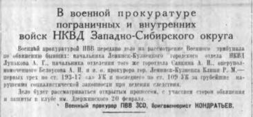Дело сотрудников Ленинск-Кузнецкого ГО НКВД. 1939 г.