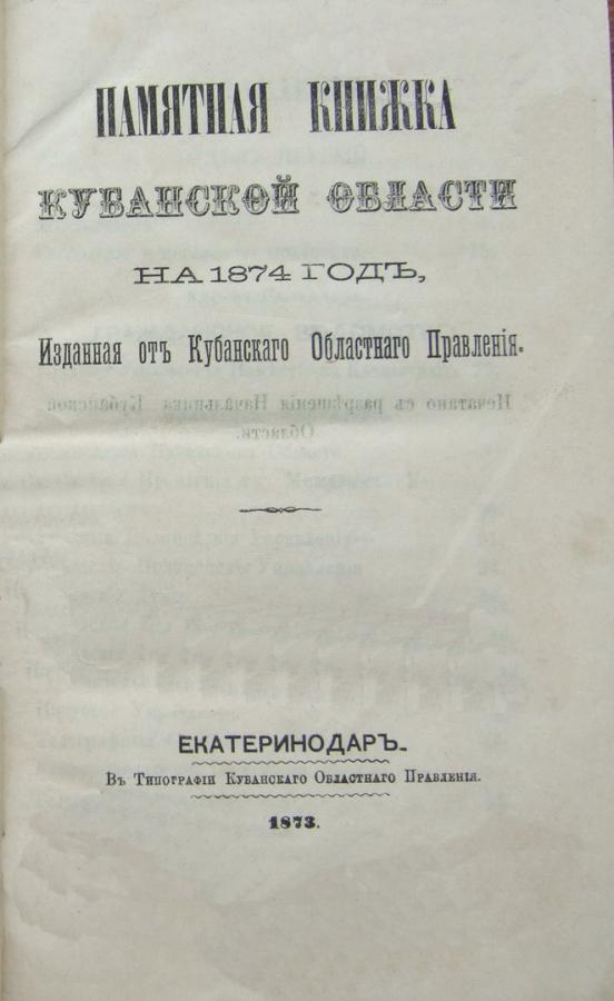 Памятные книжки Кубанской области и Кубанский календарь [1874-1916]