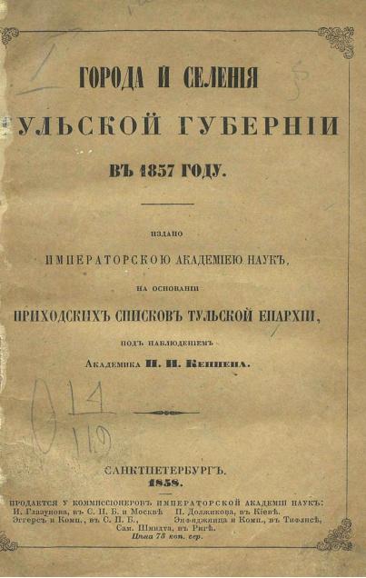 Города и селения Тульской губернии в 1857