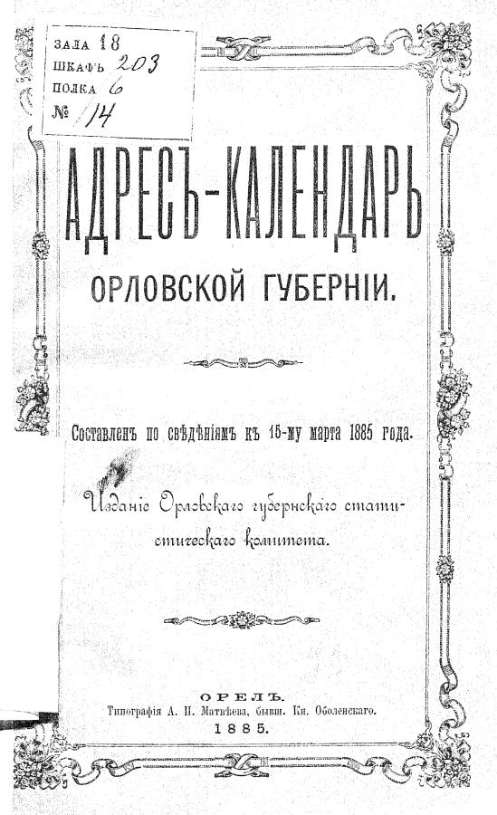 Адрес-календарь Орловской губернии 1885