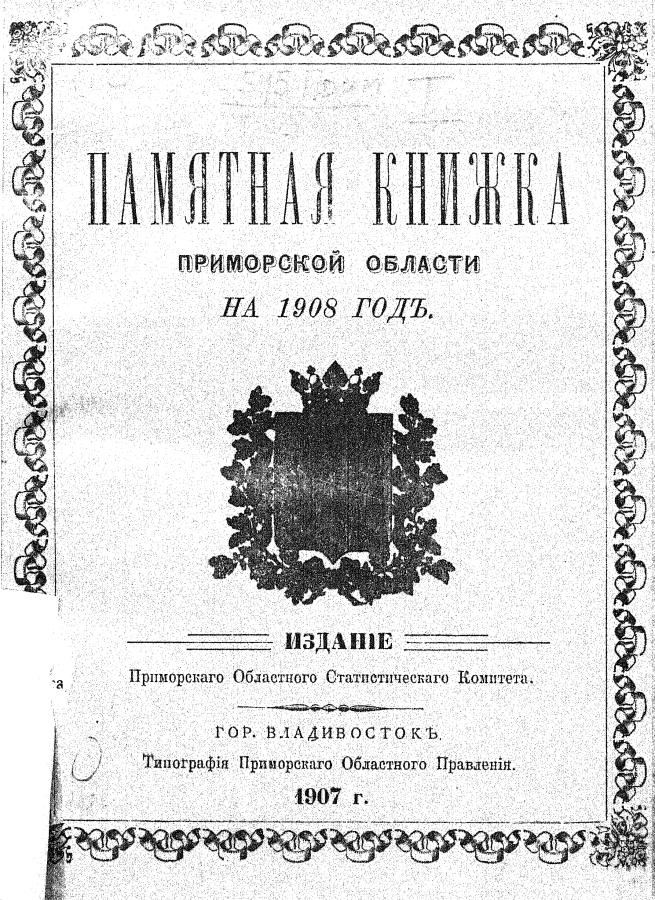 Памятная книжка Приморской области на 1908 год