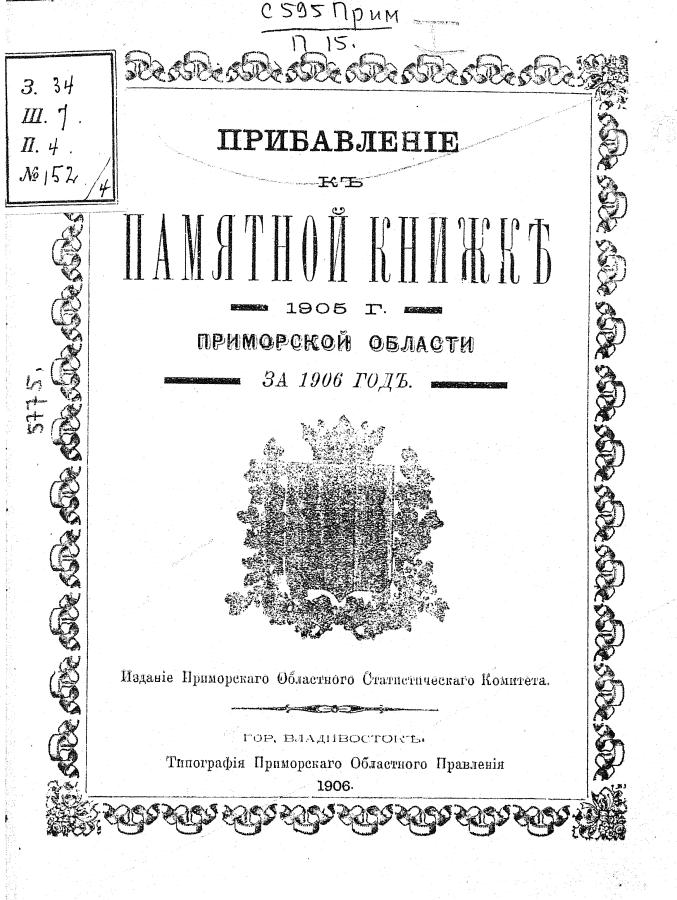 Прибавление к памятной книжке Приморской области 1905 г. за 1906 год