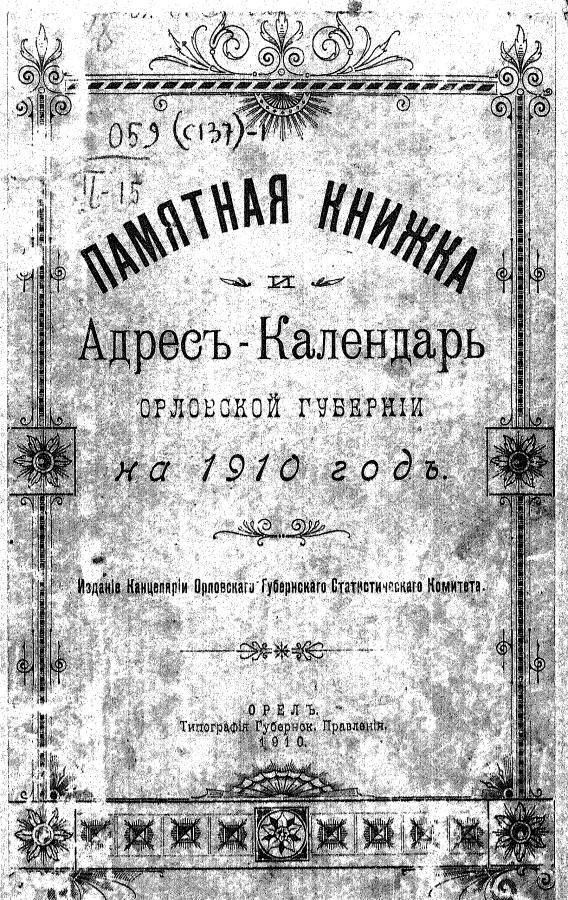 Памятная книга и адрес-календарь Орловской губернии 1910