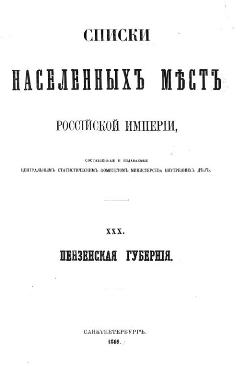 Список населённых мест Пензенской губернии 1869