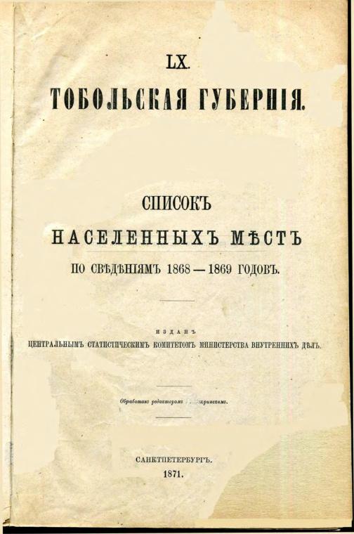 Список населённых мест Тобольской губернии 1869