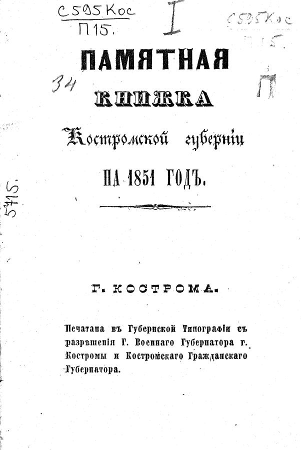 Памятные, справочные книжки и адрес-календари Костромской губернии [1851-1916]